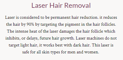 A common problem with the underarms is the “5 o’clock shadow”. Laser hair removal will help reduce the shadow by killing the hair germ cells which cause the hair to grow therefor eliminating the dark follicles that cause the shadow.